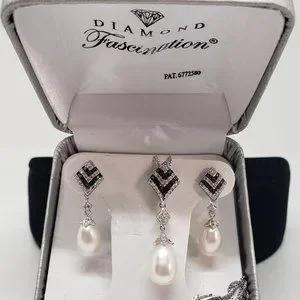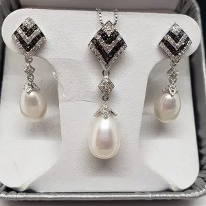 Cultured Pearl Ring/Necklace/Earring SET CFWP SS 1/3 CT