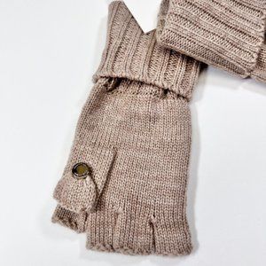 NWT - Calvin Klein - Knitted Convertible Fingerless Gloves w/ Mitten Flap Cover. Tonal label flip top 100% Acrylic heathered almond color gloves/mittens. Gloves are new with tags and are in excellent condition.