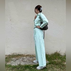 Selling this beautiful Turquoise Aligne Jean Set size EU38 and pants 28, worn twice, it’s a bit lose on me, unfortunately!