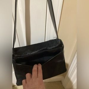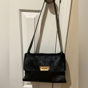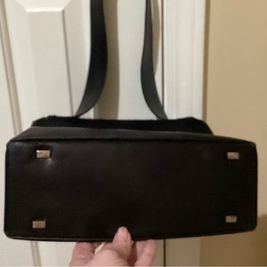 EUC ADRIENNE VITTADINI GORGEOUS VINTAGE PURSE BLACK FAUX FUR&100%REAL LEATHER GOLD LATCH WITH AV LOGO PLEASE SEE ALL PICS FOR DETAILS!!!!!