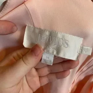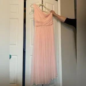 David’s Bridal blush pink one shoulder dress. Really snatches the waist and the inside is super soft. Only worn once as a bridesmaid for a wedding.