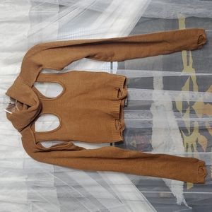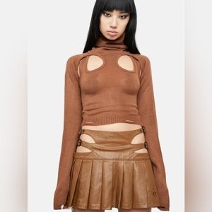 NWT Darker Wavs by Dollskill Knit Cut-out Turtleneck Sweater Top XS Brown