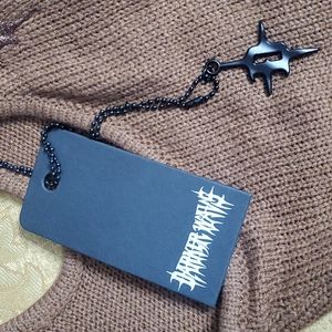 NWT Darker Wavs by Dollskill Atmosphere Knit Cut-out Turtleneck Distressed Sweater Top XS Brown 100% Acrylic - comes with Darker Wavs Necklace - STYLE IS SOLD OUT