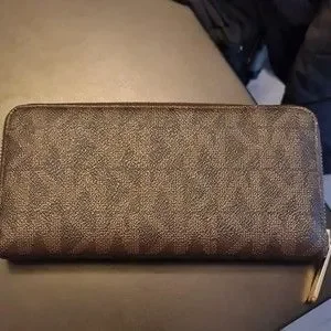 Michael Kors Brown Signature Leather Zip Wallet