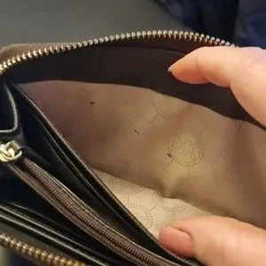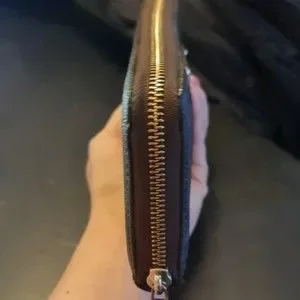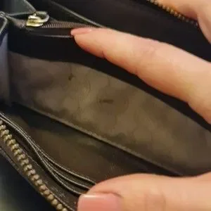 scratches on hardware, slight tarnish on zipper.