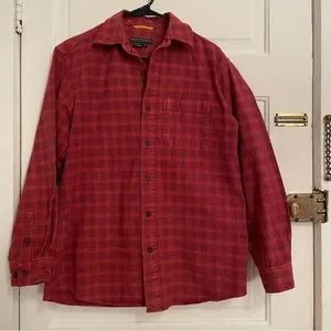 This shirt will definitely be great for the outdoors! Whether going hiking or chopping wood, this shirt will keep you stylish, without having to worry that a twig will cause a tag or rip. Men’s medium. In good condition, though who knows how many times it was worn! I have a feeling this shirt has a long lifespan :)