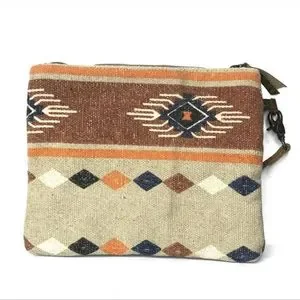 NEW! Handmade genuine leather Aztec canvas clutch/pouch/bag.