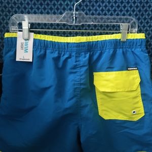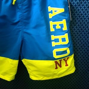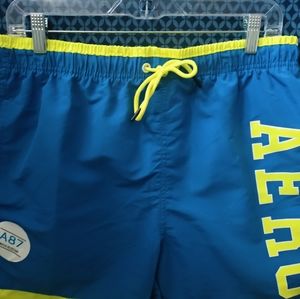 Aeropostale - Men's neon directoire blue and lemon tonic, water resistant swim shorts with mesh lining and 3 functional pockets. These eye catching swim trunks are 100% polyester. New with tags. Size - Large