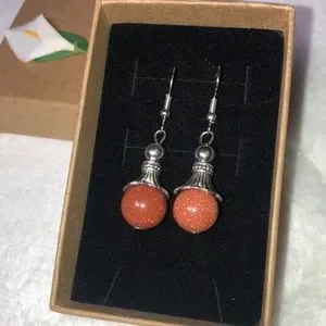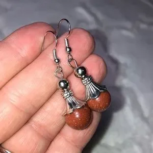 Gorgeous goldstone pendant dangle fishhook earrings with silver tone hardware. New, never worn. Handmade with love (by me!) Delivered in the pictured decorative box.