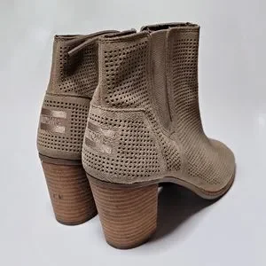 Toms Taupe Peep Toe Chunky Heel Booties