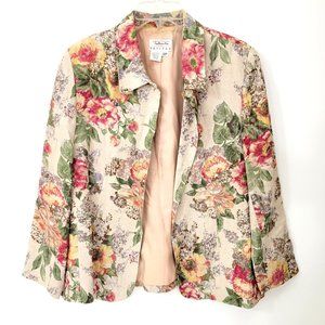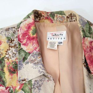Talbots Petites Floral Linen Blazer Cottagecore Romantic Vintage