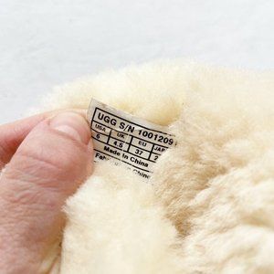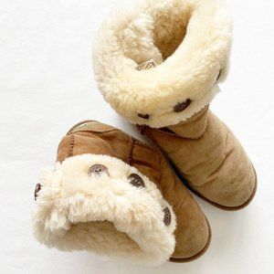 Gently used. Standard wear. Some discoloration. See pictures. Brown sheepskin suede boots. Sherpa lined. Fold over with buttons around. UGG size 6. Smoke free home.
