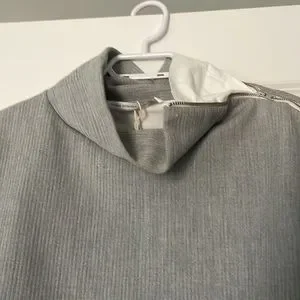Looks like two shirts. But attached. Lots of cool features like zipped mock neck with shirt exposed underneath. Buttons on side of white shirt. Size small but has a boxy fit. Could fit medium. Excellent condition.