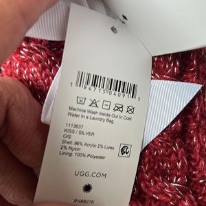 Machine wash, dry flat .96% Acrylic, 2% Nylon, 2% Metallic.