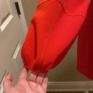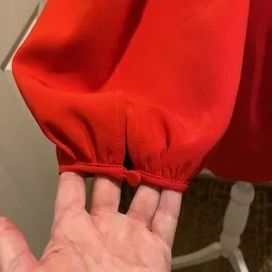 Perfect for a Valentine or Galentines Date. A bit retro feel with the bell sleeves and short hemline but Oh so French feel with the Peek-A -Boo accent at chest.