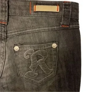 Request Denim Women's bootcut denim jeans are cut from medium stretch denim and finished in a faded black wash. Button-zip fly embellished with a black rhinestone adds a touch of extra sparkle, making these jeans really easy to dress up, or down. Super versatile, & would be cute with a sneaker, boot, or dressed up with a heel!