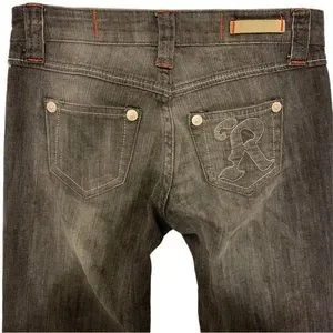 •STYLE: Low Rise Silhouette, Bootcut/Baby Bootcut, Faint Whiskers & Fading Throughout, 5-Pocket Style, Silver Rivet Detail, Single Signature Back Pocket, Zip Fly Button Closure, Fly Button Embellished with a Black Rhinestone, Soft Medium Weight Denim with a Slight Stretch, Contrast stitching