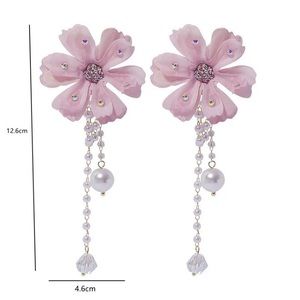 ⭐️ Big Pink Fabric Drop Long Crystals Earrings