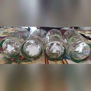 Vintage Christmas Drinking Glasses Hand Painted with Green and Red Holly - Set of 4