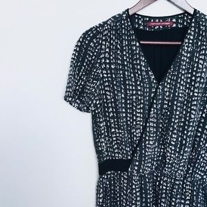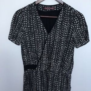 Comptoir des Cotonniers silk minidress in white, black and grey pattern, size S