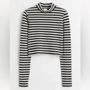 H&M Striped Cropped Mock Neck Top