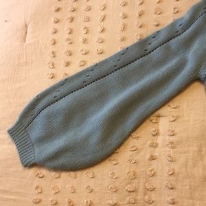 Slate blue boxy rib knit sweater with full sleeves and a thick rounds color. Perfect for spring!