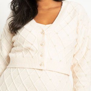 new ELOQUII pearl cableknit ivory heavyweight cardigan sweater 14 16