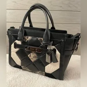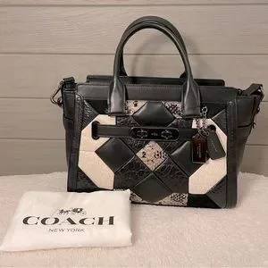 Coach Retail Quilted Exotic Swagger 27 - Rare item in black white and snakeskin