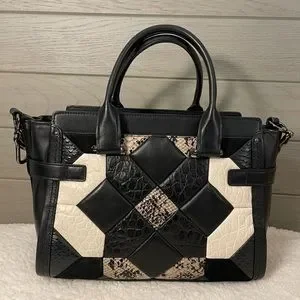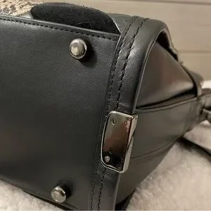 This beautiful and rare to find Coach retail item is a perfect size top handle satchel that can also be worn as a Crossbody. The exotic fabrics in black-and-white can be worn with multiple outfits for an add of pop. The bag is in great used condition… please zoom in on all pictures to see the ware.