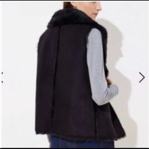 LOFT faux suede/shearling sleeveless jacket in black