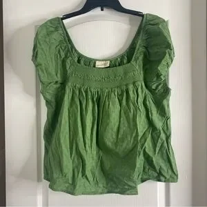 NWT Universal Thread large green blouse from Target. 100% cotton. Never worn. Smoke free and animal free home. I don’t know why the size says large on the blouse and medium on the tag, but it’s a size large blouse.