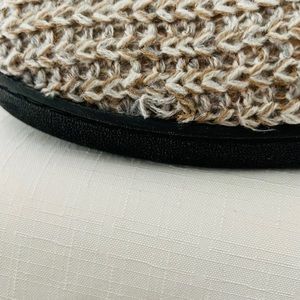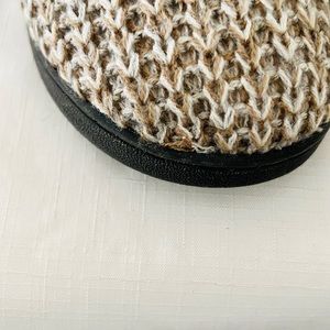 Authentic / Perfect for Cooler Weather / Indoor~Outdoor / In colors cream, brown and gray, woven top front with bow, woven back with snowflake, finished around the perimeter, faux cream lining, indoor~outdoor outer sole made with Thermoplastic-Rubber. Insignia tabs sown on the outside of bootie.