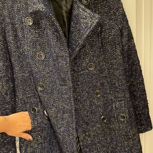- Jacket with lapel collar, long sleeves, and Front welt pockets.