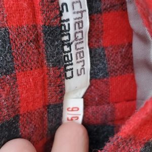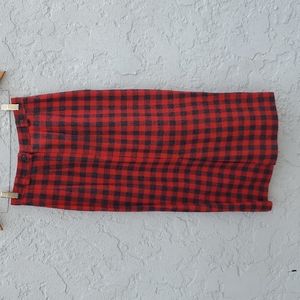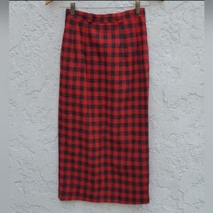 Vintage Red & Dark Gray Checked Buffalo Plaid Pencil Long Skirt