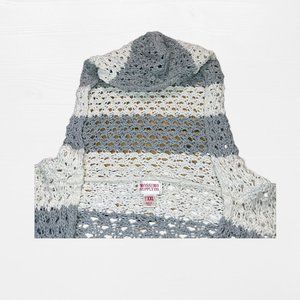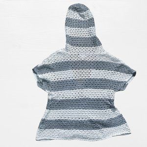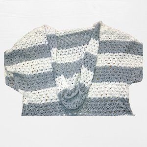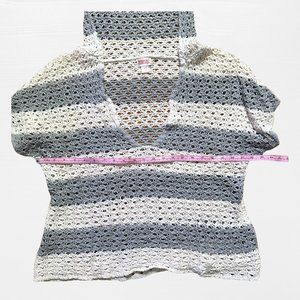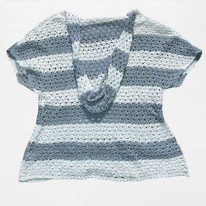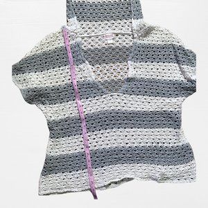 SOLD grey and white striped knit short sleeve low cut sweater hood mossimo XXL