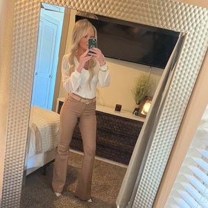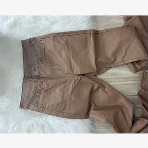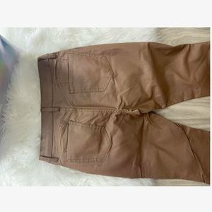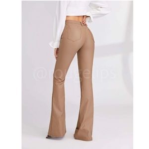 Tan Faux Leather Wax Coated Jeans Flared Leg Bell Bottom High Waist