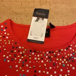 NWT Rafaella Women's Embellished Knit Pullover Top 3/4 Sleeve - Size Small