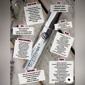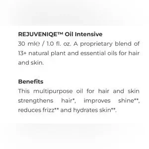 A proprietary blend of unique botanical oils rich in rejuvenating vitamins, minerals and antioxidants that absorbs quickly and completely on the hair and skin, no toxin ingredients cruelty free vegan does not contain phthalates, may be used on dry or wet hair,
