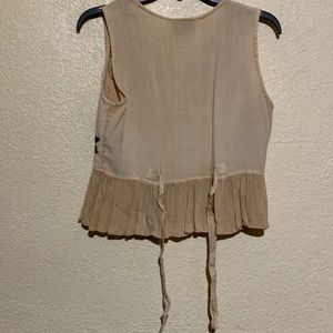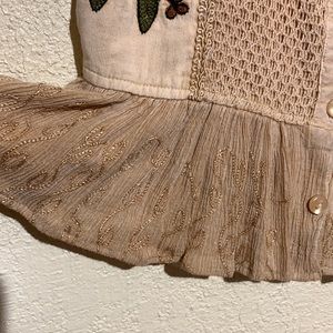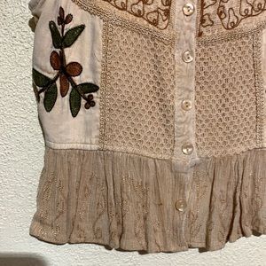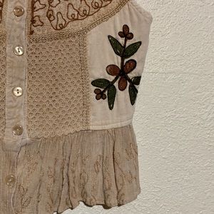 M.P.H. Top Sleeveless Blouse Tan Brown M Rayon Embroidered