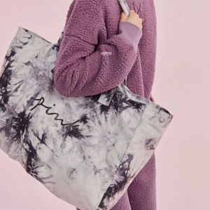 Brand new with tags attached. PINK Victoria's Secret Large Canvas Tote Bag. Features marble grey metallic tye dye on pink canvas tote. Bag dimensions are 25" x 14" x 7" with 10" handle drop.