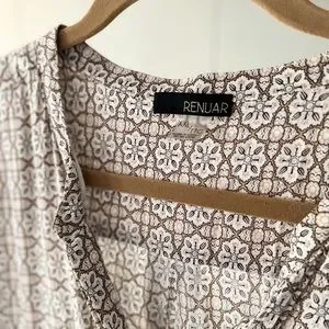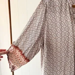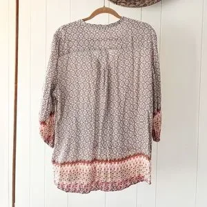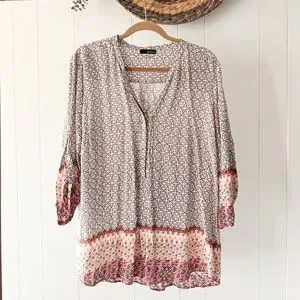 Beautiful light and airy blouse with long- 3/4 length sleeves and deep V neck. I just love the pattern on this, absolutely gorgeous! Excellent condition, very lightly worn. Tag says XXL, but fits more like XL