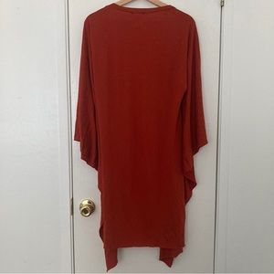 A beautiful, soft, and flowy cardigan. It's a very light layer, and would be very cute with any tank top or sleeveless shirt. Worn once. There isn't really a size, since the sleeve is quite wide, so I just put my own size.