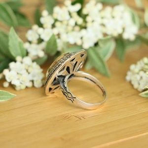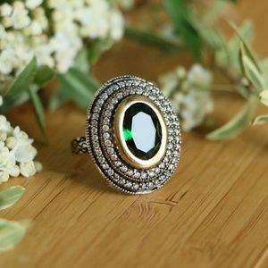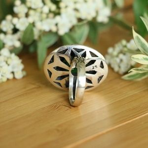 Sterling Silver Jade Stone and Cubic Zirconia Size 7.75