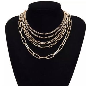 18k Gold Multi Layered Clavicle Chain Choker Necklace