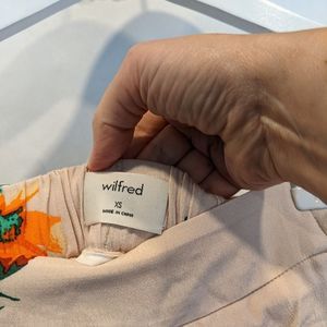 Wilfred floral pants (Aritzia) These wide-leg pants are made in an exceptionally soft fabric that drapes beautifully. A high-waisted silhouette and a subtle flare hem make for an effortless fit.