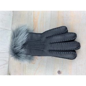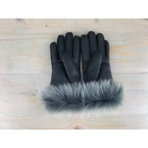 UGG THREE POINT BLACK LEATHER GLOVES WITH TOSCANA FUR Trim MED NWT