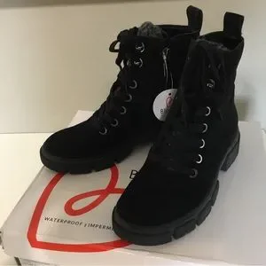 Blondo Perri ankle bootie. Size 6M. Black suede. Waterproof. Faux fur tongue. Lugsole. NIB.