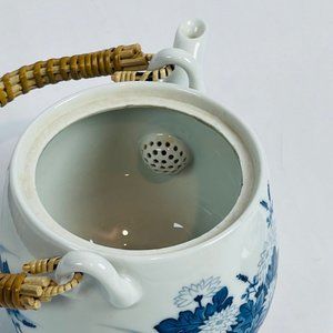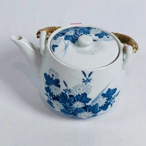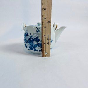 Japanese Dobin Floral Arita-yaki Porcelain Debeso Blue White Teapot