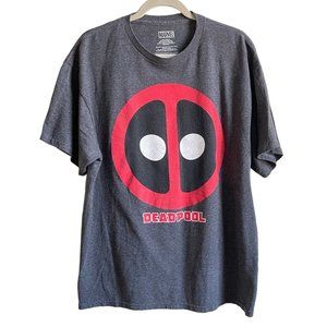 Marvel T-Shirt Deadpool Comics Graphic Simple Distressed Logo Shield Gray Short Sleeve Mens Sz XL