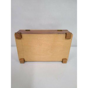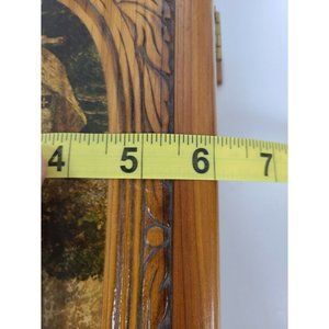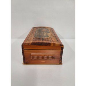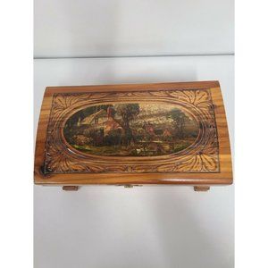 Vintage Hand Carved Painted Art Top Real Wood Jewelry Box Chest Size 3"x6"x11"